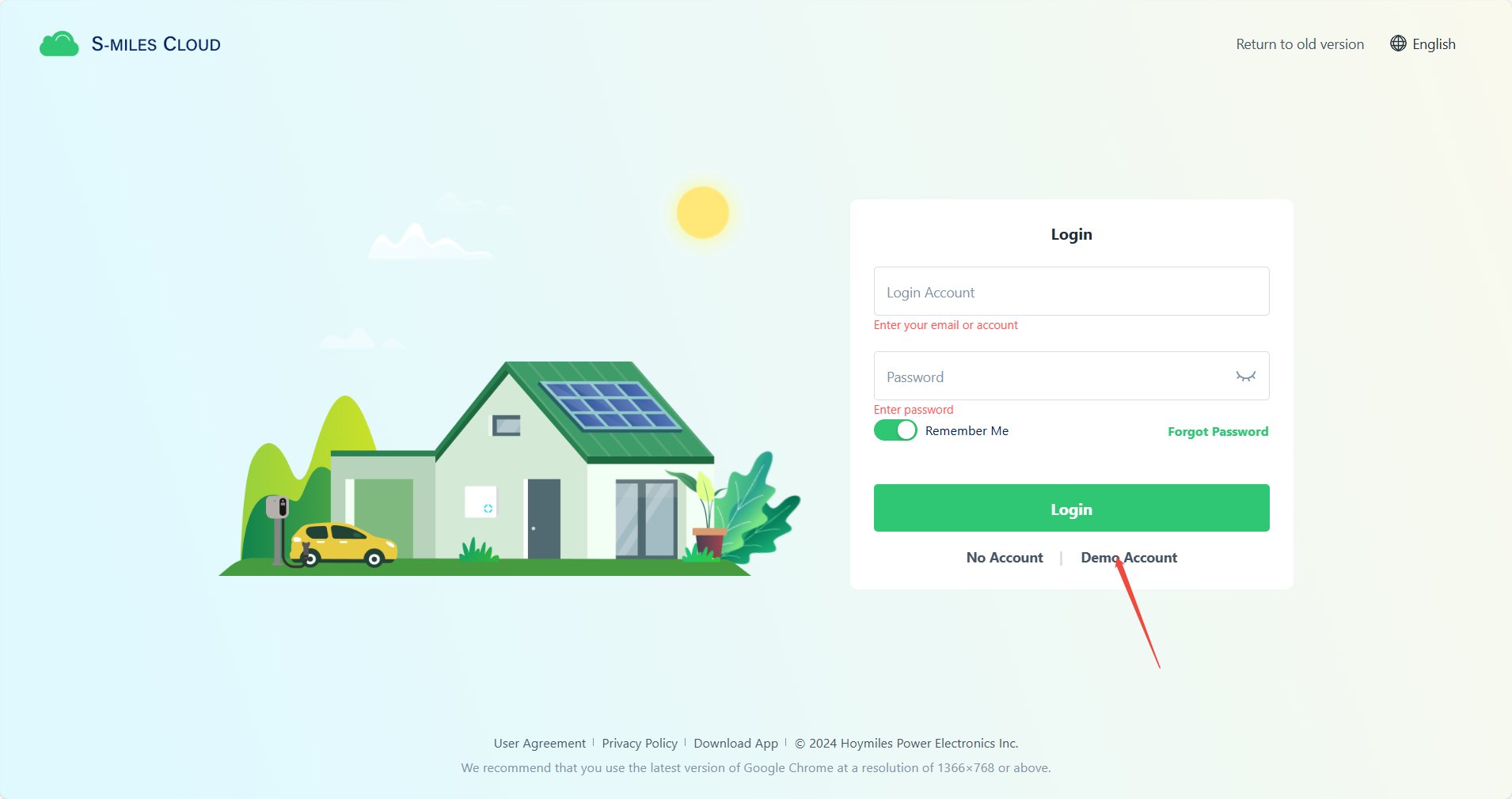 Wpis dotyczący konta próbnego znajdziesz w interfejsie logowania naszej usługi S-Miles Cloud lub w aplikacji S-Miles Installer.