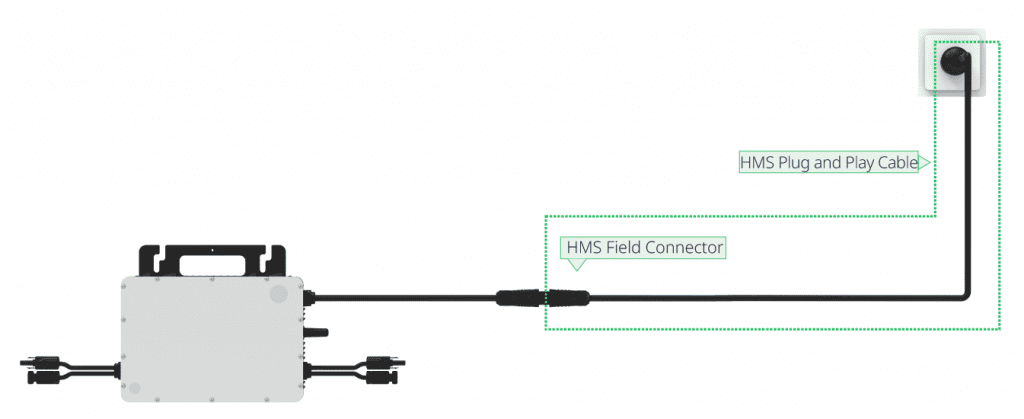 While the HMS Plug and Play Cable consists of the field connector, AC cable and plug — with one end connected to the microinverter and the other plugged into the household socket. Users can enjoy the ease of plugging the microinverter directly into the socket, without the need for any extra wiring.