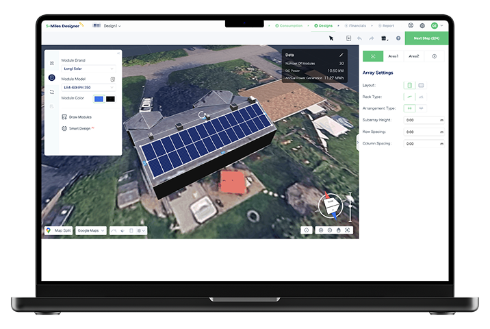 Zoptymalizuj układ paneli i wydajność systemu. Uzyskaj inteligentne rekomendacje dotyczące falowników i okablowania, aby projektować szybciej i skuteczniej.