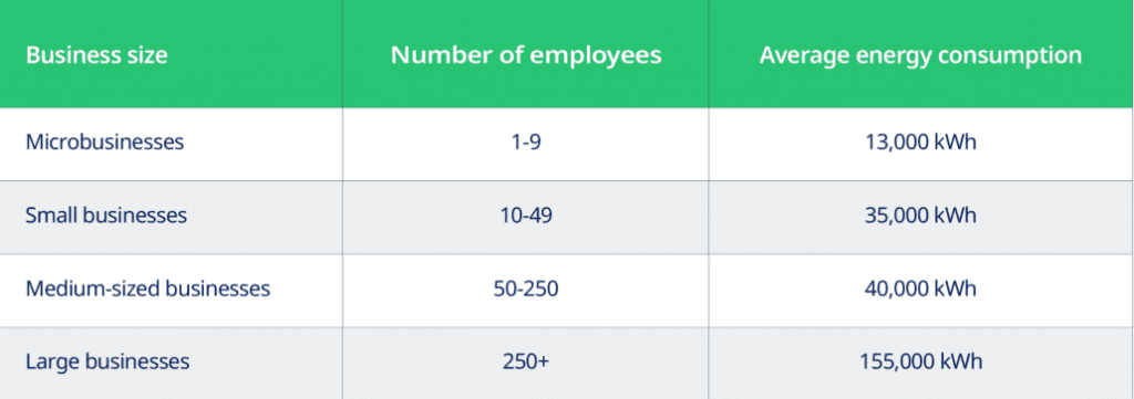 The actual amount of energy a business consumes will depend on factors like: