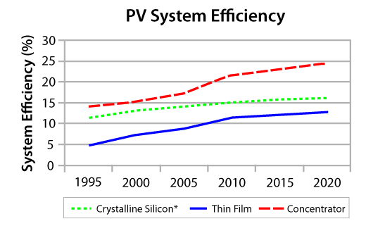 What does this mean? A 13% efficiency panel can produce 130 watts of energy from 1,000 watts of sunlight. A 20% efficiency panel, on the other hand, can produce 260 watts of energy. As efficiencies improve, the returns on solar energy relative to their up-front cost will continue to go down, making solar panels an increasingly attractive investment for businesses of all sizes.
