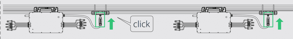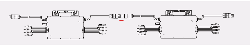 Microinverters can normally be connected in a single branch circuit. The single branch circuit that we can usually connect to microinverters is called a “daisy chain connection”; as shown in the picture below, the AC outputs of the microinverter are directly connected together.