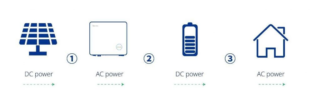 So, you’ll need an energy storage inverter to convert the AC power that your PV inverter produces back into storable DC power.